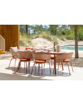 • Structure : Le cadre est fait d' acier inoxydable de haute qualité, ce qui garantit stabilité, résistance à la corrosion et une utilisation extérieure durable. L'assise et le dossier sont finis avec osier tressé à la main Cela crée une impression d'espace et une assise confortable. Le choix des matériaux rend ce fauteuil parfaitement adapté aussi bien aux terrasses privées qu'aux environnements professionnels de l'hôtellerie-restauration.