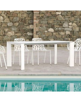Table rectangulaire extensible avec plateau en aluminium moucheté